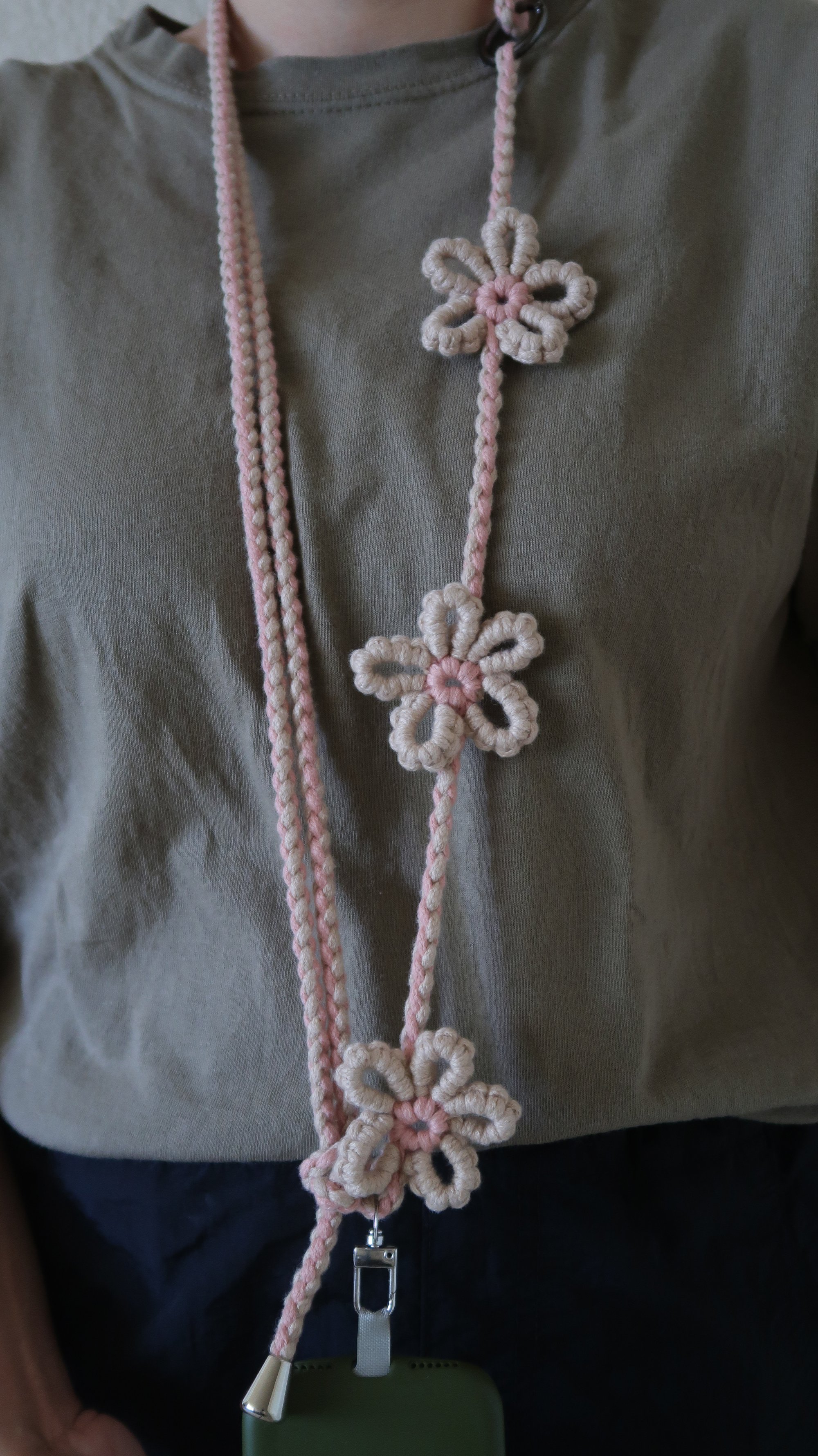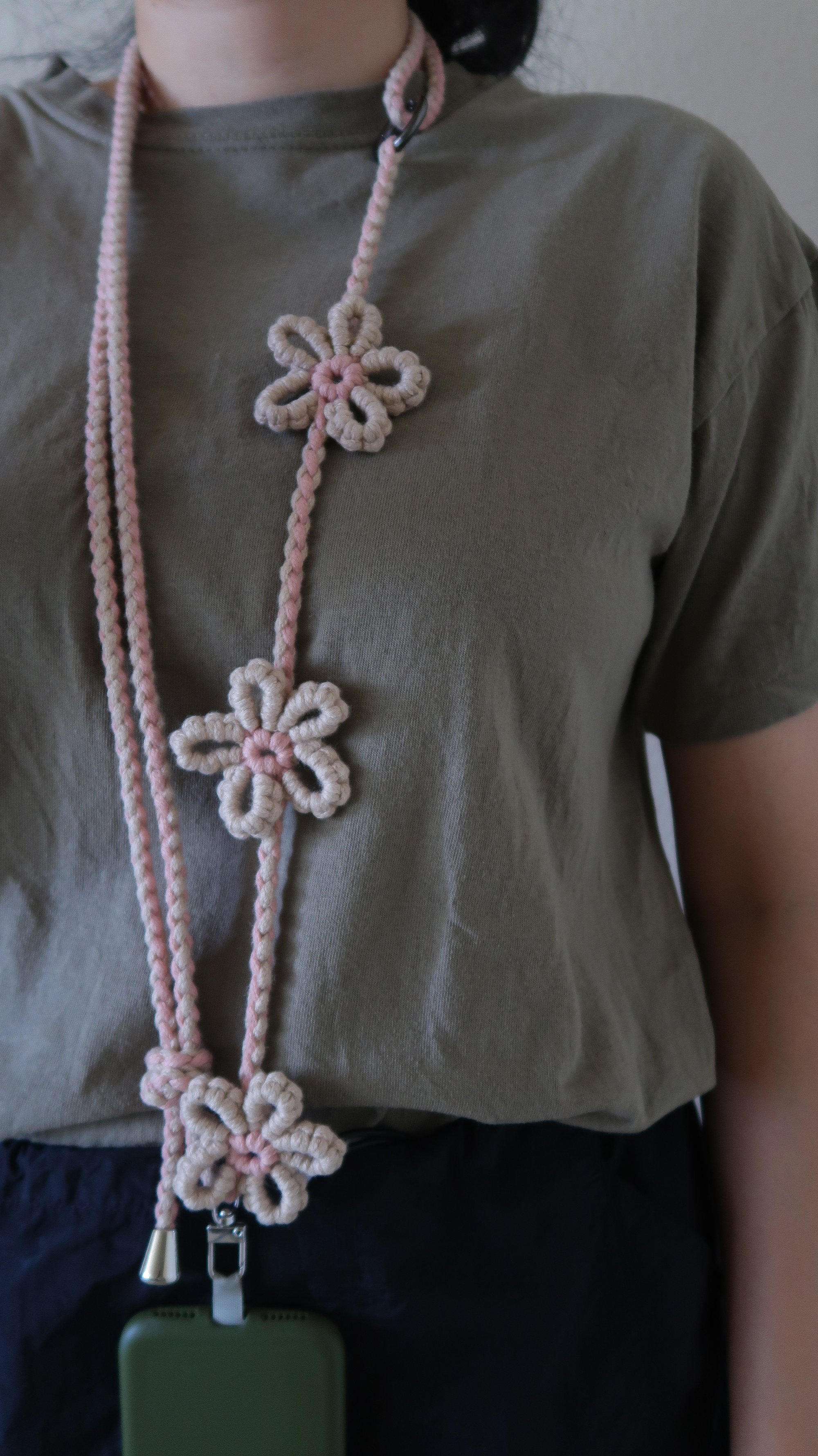 Keep your phone close and your style fresh with this handcrafted macrame phone strap + lanyard, featuring delicate flower pattern with adjustable length (95–150cm). Made from high-quality braided cotton cord, it's soft, durable, and perfect for everyday wear.